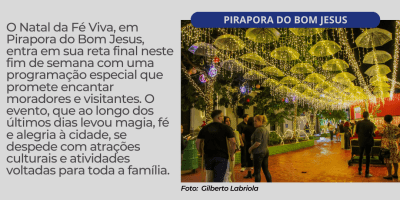 “Natal da Fé Viva” chega ao fim neste final de semana em Pirapora do Bom Jesus com programação especial