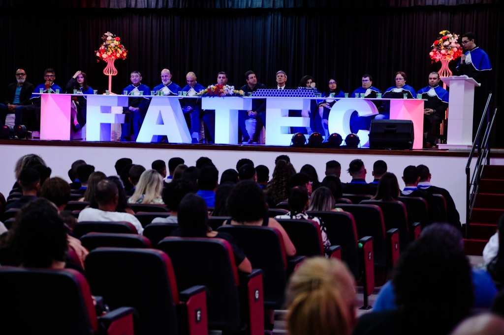 A noite desta quarta-feira (16/10) foi de muita alegria para os 59 formandos dos cursos de Análise e Desenvolvimento de Sistemas, Ciência de Dados, Gestão Comercial e Segurança da Informação da Fatec de Santana de Parnaíba. Eles participaram da cerimônia de formatura realizada no auditório do Poupatempo, na Fazendinha.