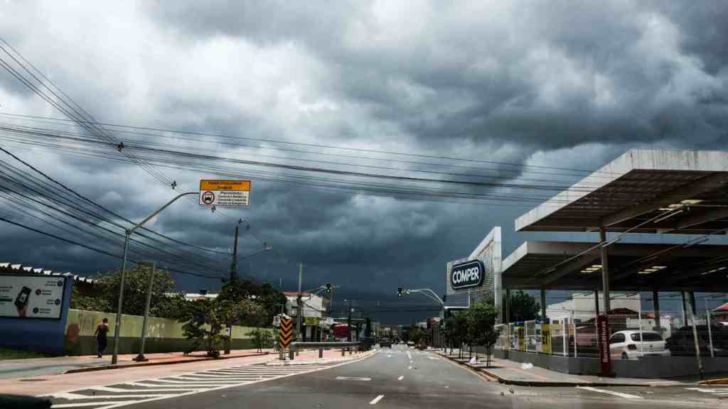 Além da queda de temperatura, o choque entre a massa de ar frio e o calor acumulado pode provocar temporais, com rajadas de vento e trovoadas.