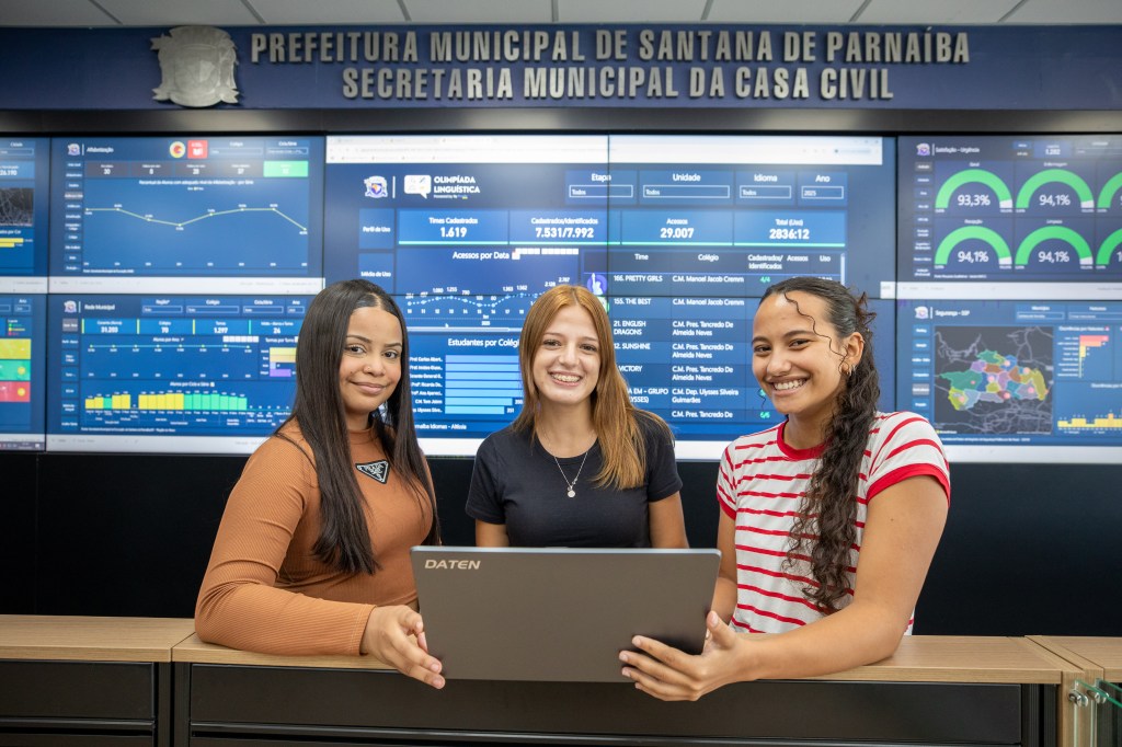 Estudantes do Ensino Fundamental (8º e 9º anos) e do Ensino Médio participam das Olimpíadas, e esses alunos foram responsáveis por 82,5% dos acessos gerais da plataforma em fevereiro. Entre os alunos, muitos são estagiários da prefeitura e têm se destacado na competição, como Beatriz de Lima Estrela, estudante do Colégio Ulysses Guimarães, Karolyna Biazuzo e Ana Elisa de Oliveira, ambas do Colaço (foto). As Olimpíadas Linguísticas ocorrem durante este semestre, com previsão de encerramento em junho. Ao final da competição, os primeiros colocados serão premiados.