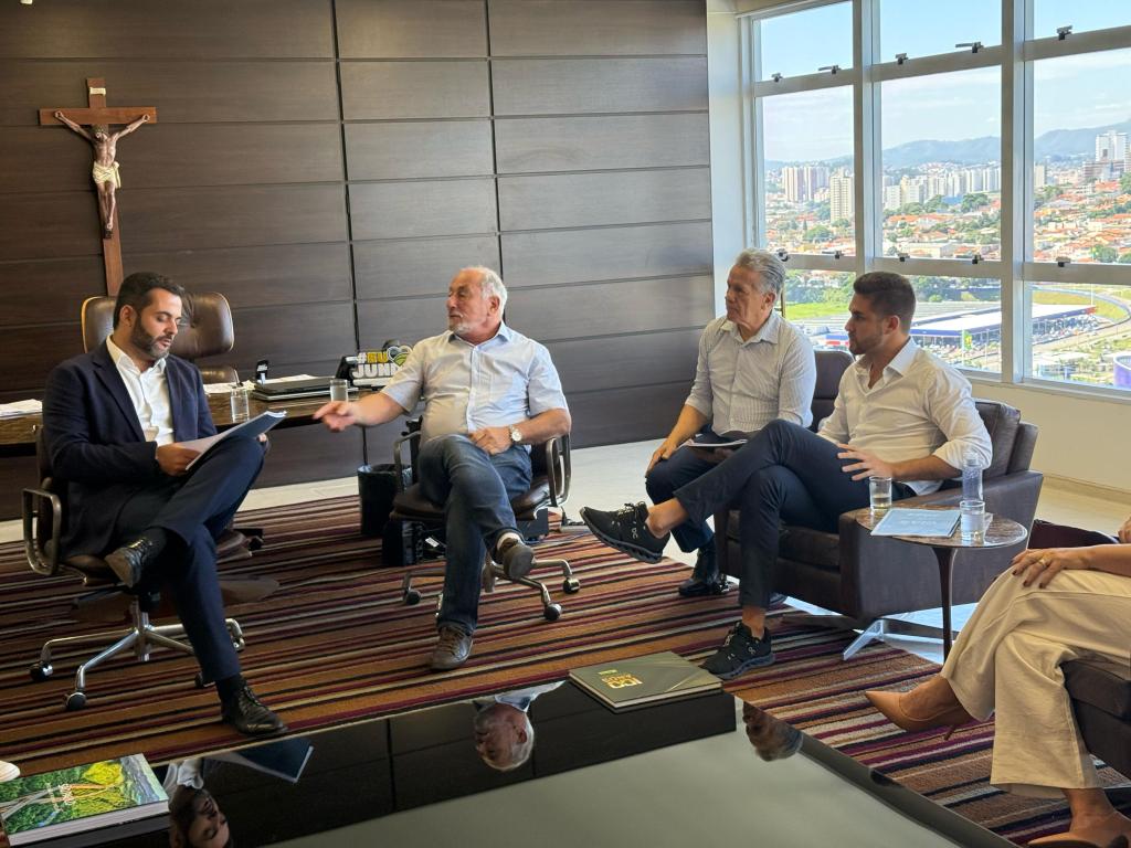 Ao lado dos prefeitos Gustavo Martinelli (Jundiaí) e Dr. Dario Pacheco (Vinhedo), e acompanhado do secretário de Infraestrutura e Serviços Públicos de Cajamar, Raul Lopes, Kauãn Berto debateu estratégias conjuntas para o descarte correto de resíduos e a proteção das áreas verdes que fazem divisa entre os três municípios.
