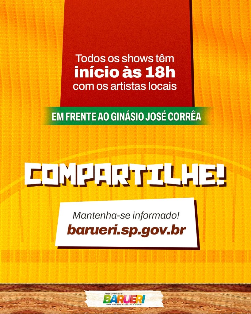 A festa continua em Barueri! O Arraiá Barueri 2025 entra na sua segunda semana com uma programação repleta de música, cultura e tradição. De 19 a 24 de junho, sempre a partir das 18h, o público poderá curtir grandes shows em frente ao Ginásio José Corrêa, com entrada gratuita.