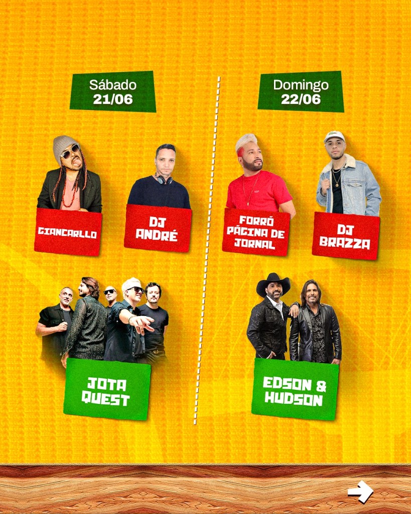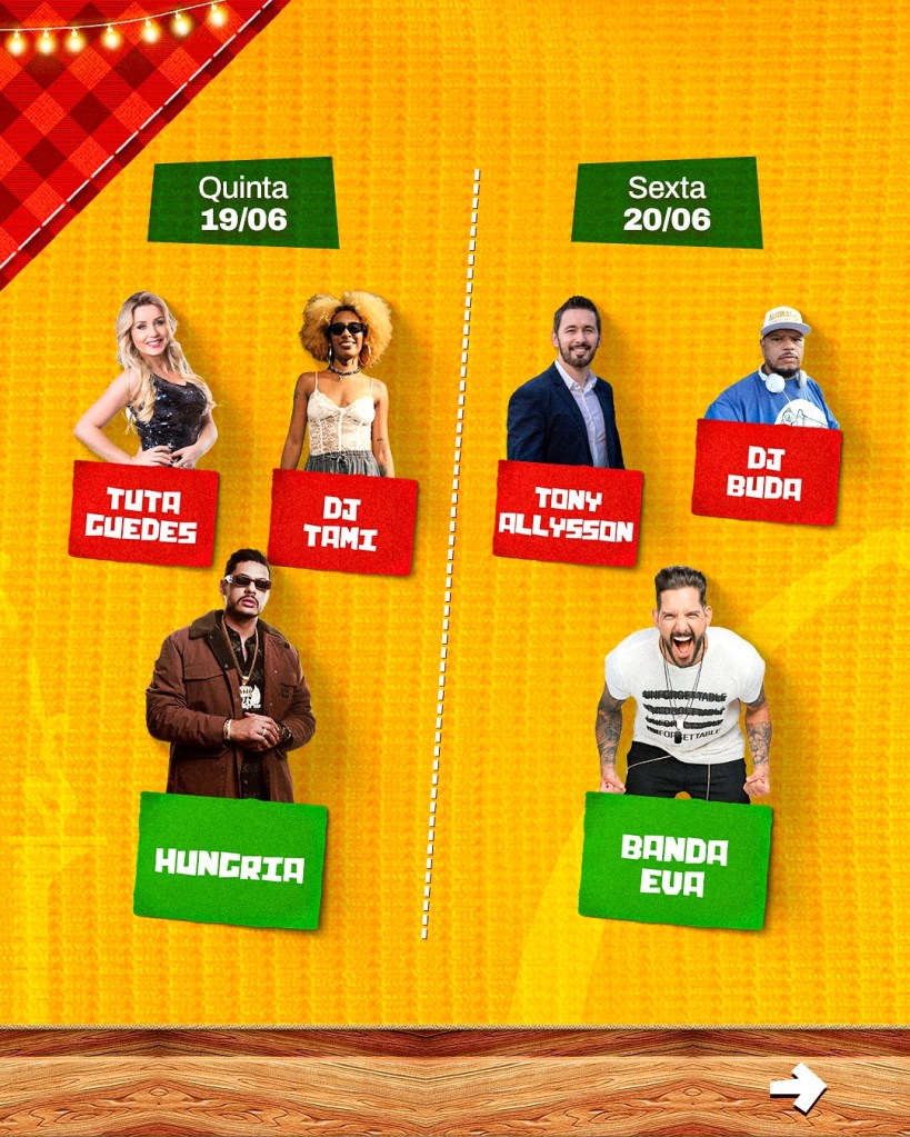 A programação traz nomes consagrados da música nacional, DJs, artistas regionais e muita diversão para toda a família. O espaço conta ainda com comidas típicas, decoração especial para fotos e toda a estrutura necessária para garantir conforto e segurança ao público.