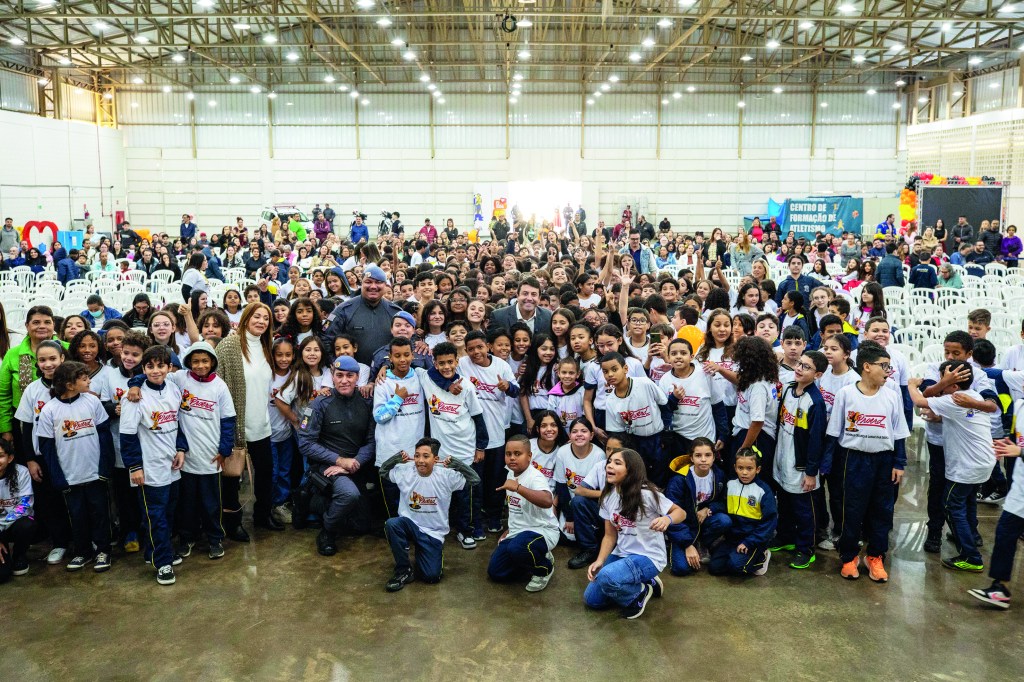 O mascote-símbolo do programa, o Leão Daren, animou o público presente durante a cerimônia, que também contou com homenagens aos pais e instrutores, além da revelação dos alunos eleitos como destaques.
