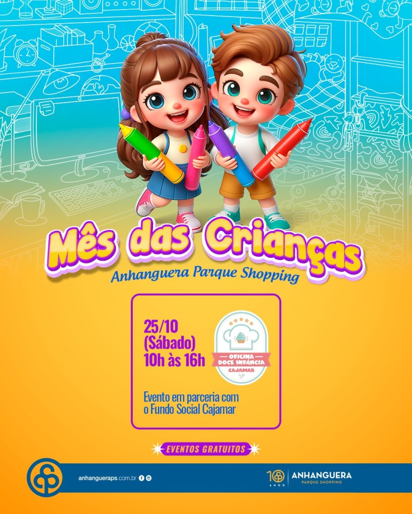 “Acreditamos na importância de oferecer momentos lúdicos e educativos para as crianças e suas famílias. Apoiar a Oficina Doce Infância, em parceria com o Fundo Social de Cajamar, reforça nosso compromisso com a comunidade e com a infância”, destacou Christiane Gomez, gerente de marketing do Anhanguera Parque Shopping.