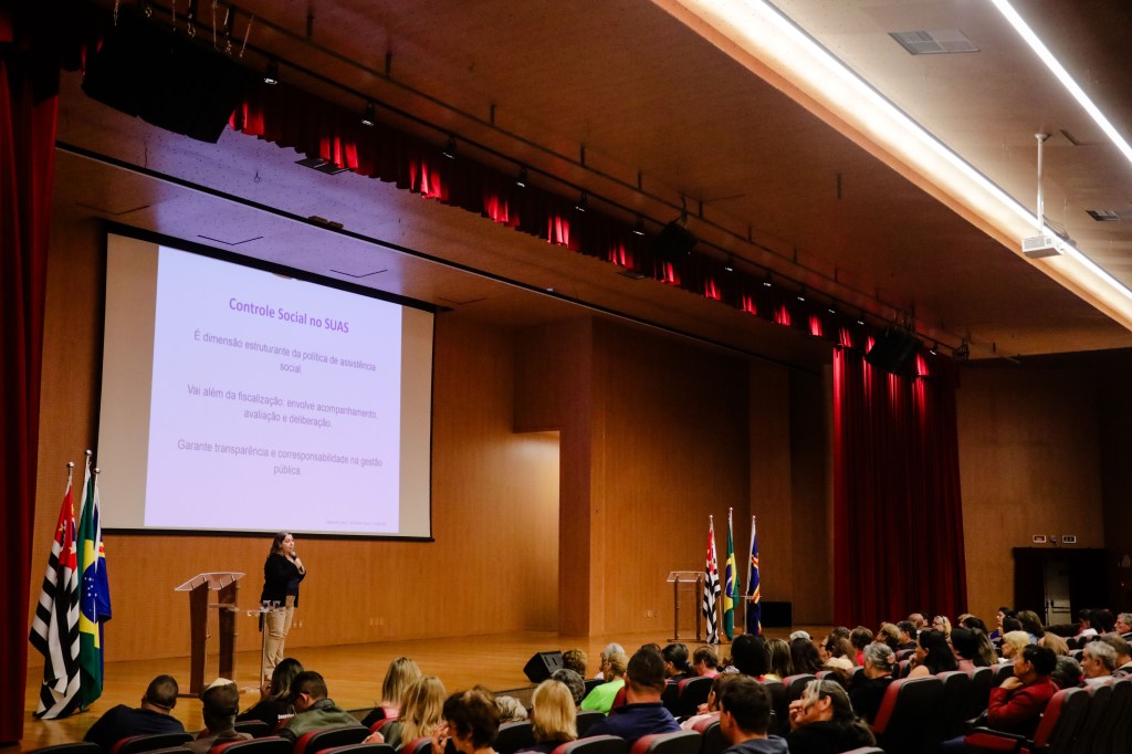 Um dos destaques do evento foi a palestra da assistente social Bianca de Santis, que abordou o tema “Controle Social: protagonismo e participação para o fortalecimento e a gestão democrática do SUAS”. A apresentação chamou atenção pela profundidade e pela importância do engajamento popular na construção de uma cidade mais justa e participativa.