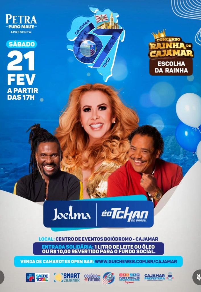 Para comemorar os 67 anos, a Prefeitura promove neste sábado (21), a partir das 17h, uma grande festa no Centro de Eventos Boiódromo de Cajamar. A programação contará com shows da cantora Joelma e do grupo É o Tchan, prometendo muita animação e música para toda a família.