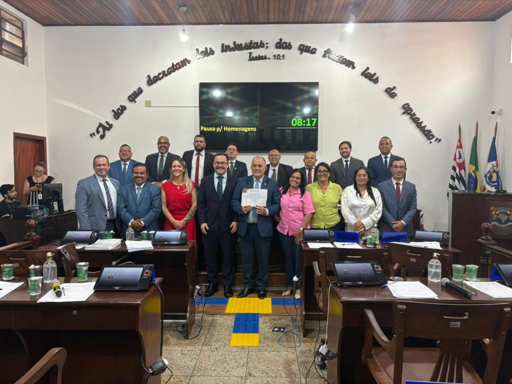 A homenagem destaca a eleição de Gregório Rodrigues Pontes Maglio para a presidência e de Marcos Ferreira Godoy, conhecido como Teco, para a vice-presidência do consórcio. A nova gestão reafirma o compromisso regional com a cooperação intermunicipal e o desenvolvimento de soluções compartilhadas em áreas estratégicas de interesse público.