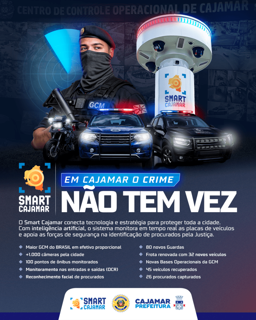 A Prefeitura de Cajamar tem intensificado o combate à criminalidade com a implantação do programa Smart Cajamar, um moderno sistema de monitoramento que utiliza tecnologia, inteligência artificial e integração entre as forças de segurança.