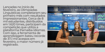 Sem categoria Olimpíadas Linguísticas fazem plataforma Parnaíba Idiomas ter aumento de 1.200% em acessos 19 de março de 2025 — 0 Comentários
