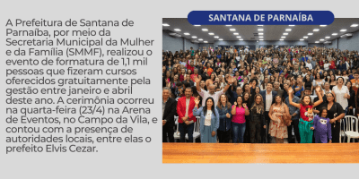 Secretaria da Mulher e da Família de Santana de Parnaíba forma mais 1,1 mil pessoas em 46 cursos