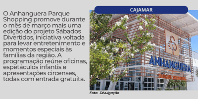 Sem categoria Sábados Divertidos de março levam circo, teatro infantil e diversão gratuita ao Anhanguera Parque Shopping 6 de março de 2026 — 0 Comentários