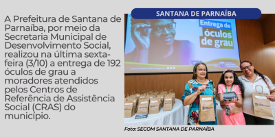 Prefeitura de Santana de Parnaíba entrega mais 192 óculos de grau a moradores atendidos pelos CRAS