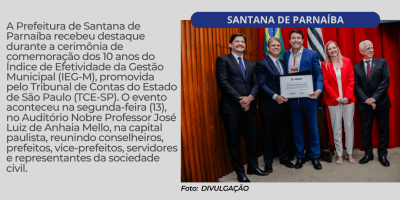 Santana de Parnaíba é destaque no Estado e recebe reconhecimento do TCE-SP por boas práticas de gestão