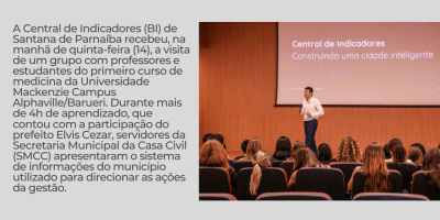 Sem categoria Central de Indicadores (BI) de Santana de Parnaíba recebe visita de estudantes de medicina do Mackenzie 19 de março de 2025 — 0 Comentários