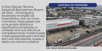Sem categoria Santana de Parnaíba inaugura Etec modernizada no bairro Fazendinha nesta segunda-feira (23) 20 de fevereiro de 2026 — 0 Comentários