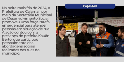 Prefeito Kauãn Berto acompanha força-tarefa para acolher moradores em situação de rua na noite mais fria do ano em Cajamar