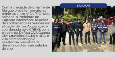 Cajamar reforça acolhimento à população em situação de rua durante frente fria