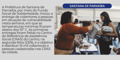 Sem categoria Prefeitura de Santana de Parnaíba entrega cobertores a pessoas e famílias atendidas pelos oito CRAS da cidade 27 de junho de 2025 — 0 Comentários