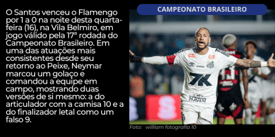 Santos bate Flamengo com golaço de Neymar e garante segunda vitória seguida no Brasileirão