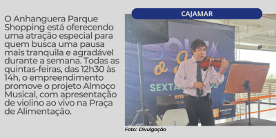 Sem categoria Almoço com violino ao vivo anima as quintas-feiras no Anhanguera Parque Shopping 24 de fevereiro de 2026 — 0 Comentários