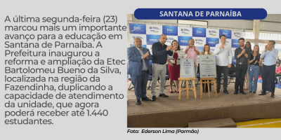 Sem categoria Prefeitura amplia Etec da Fazendinha e unidade passa a atender até 1.440 estudantes em Santana de Parnaíba 24 de fevereiro de 2026 — 0 Comentários