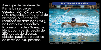 Líder geral, Santana de Parnaíba recebe 5ª etapa de campeonato de natação da ARN