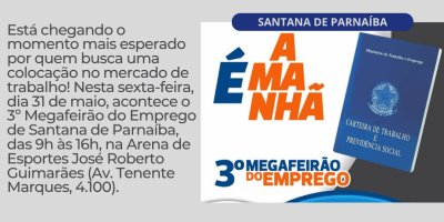 Amanhã é dia de oportunidade em Santana de Parnaíba!