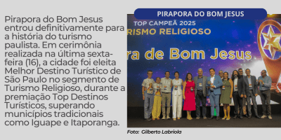 Pirapora do Bom Jesus é eleita o melhor destino turístico religioso do Estado de São Paulo