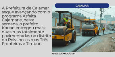 Prefeito Kauan entrega novas ruas pavimentadas e anuncia recapeamento das principais avenidas de Cajamar