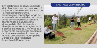 Sem categoria Santana de Parnaíba inicia Junho Verde com programação especial e ações de sustentabilidade 13 de junho de 2025 — 0 Comentários