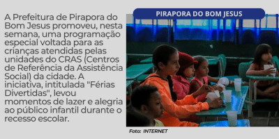 Sem categoria Pirapora do Bom Jesus realiza atividades especiais de férias nos CRAS 18 de julho de 2025 — 0 Comentários