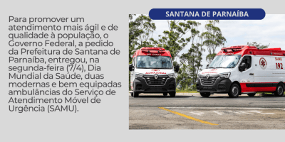 Sem categoria Santana de Parnaíba recebe duas novas ambulâncias do SAMU no Dia Mundial da Saúde 11 de abril de 2025 — 0 Comentários