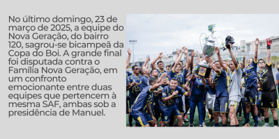 Sem categoria Nova Geração conquista o bicampeonato da Copa do Boi 24 de março de 2025 — 0 Comentários