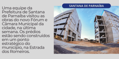 Sem categoria Prefeitura de Santana de Parnaíba vistoria obras do novo Fórum e Câmara, que estão em ritmo avançado 20 de junho de 2025 — 0 Comentários